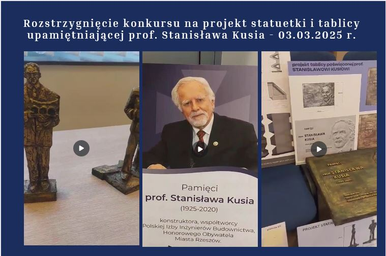 Trwają intensywne przygotowania do wyjątkowego wydarzenia – uświetnienia pamięci prof. Stanisława Kusia podczas jubileuszowej X Konferencji Naukowo-Technicznej Kształtowanie Konstrukcji i Budowli 2025, która odbędzie się w dniach 4-6 czerwca 2025 r. Podczas sesji otwierającej w siedzibie PDK OIIB nastąpi uroczyste wręczenie nagrody imienia prof. St. Kusia: Innowacyjna myśl techniczna profesora Stanisława Kusia w obiektach zrealizowanych na terenie Rzeszowa. To wyróżnienie ma na celu podkreślenie trwałego wpływu Profesora na rozwój budownictwa i przestrzeni miejskiej. A tym czasem prezentujemy kulisy powstawania statuetki, która będzie symbolem tej prestiżowej nagrody. …więcej>>