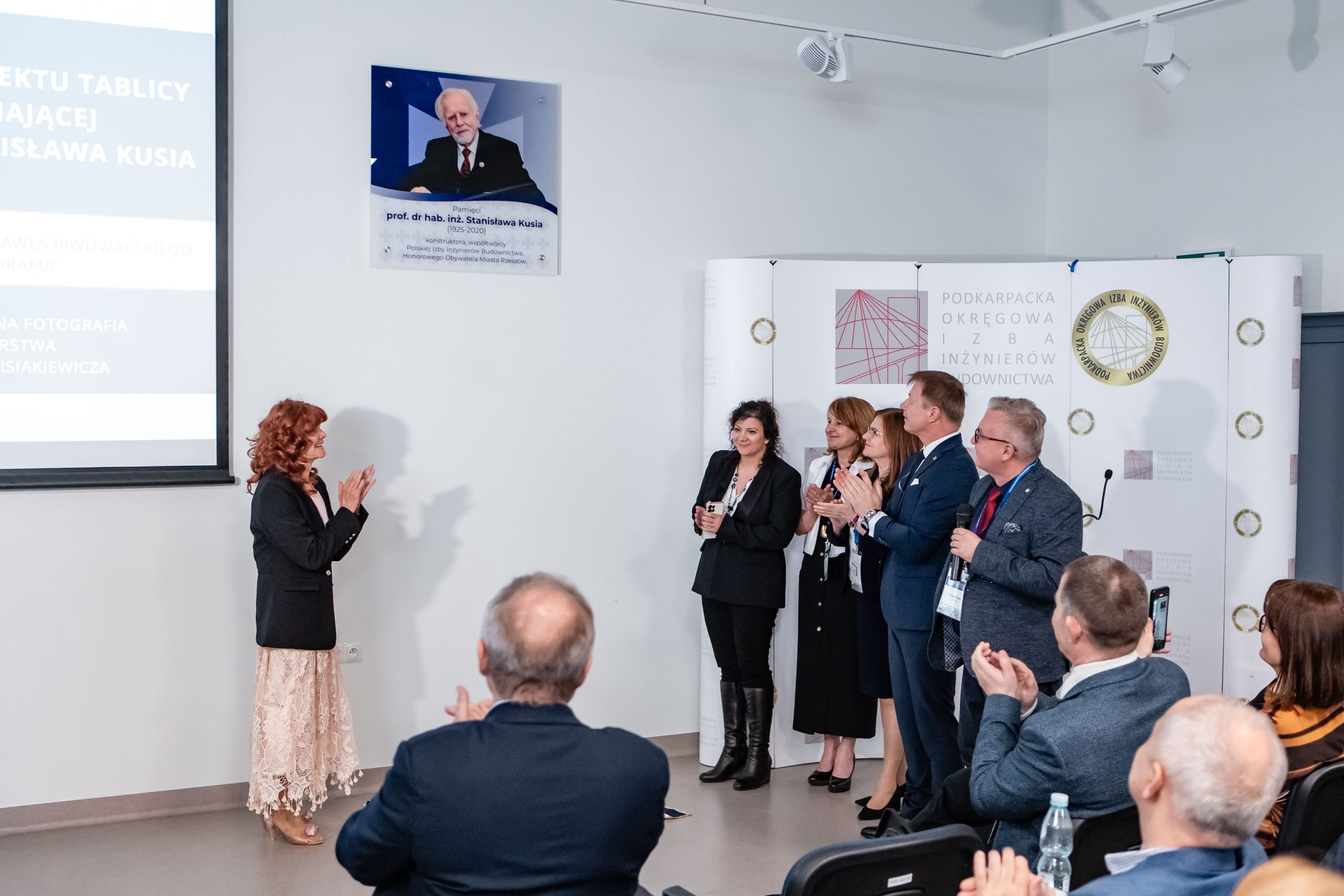 Podczas sesji otwierającej żona prof. Stanisława Kusia uroczyście odsłoniła pamiątkową tablicę znajdującą się w auli Podkarpackiej OIIB, która od tego dnia nosi imię Profesora – wybitnego inżyniera, cenionego nauczyciela akademickiego, uznanego autorytetu w dziedzinie budownictwa oraz współtwórcy Polskiej Izby Inżynierów Budownictwa.