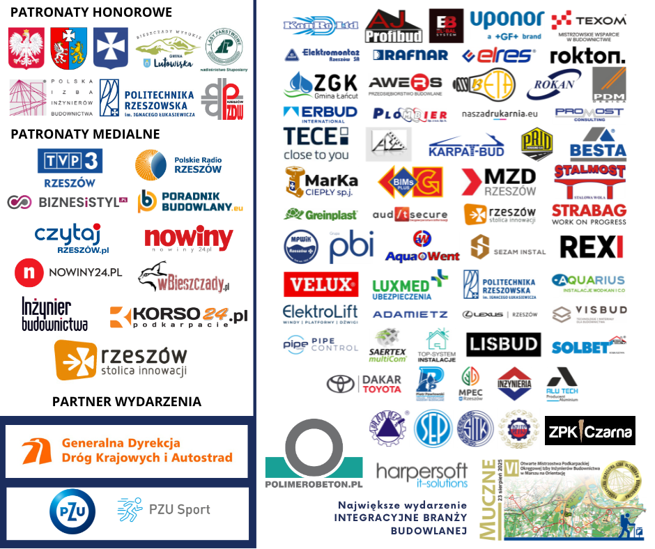 Pokazywaliśmy ich na slajdach, a teraz przyszedł czas, by głośno i wyraźnie powiedzieć: DZIĘKUJEMY! – VI Otwarte Mistrzostwa PDK OIIB w Marszu na Orientację nie mogłyby się odbyć bez wsparcia tych wielu firm i instytucji. Nasi Drodzy Sponsorzy i Patronowie – Jesteście nie tylko wsparciem, ale i częścią naszej Podkarpackiej Orientacyjnej Izby Inżynierów Budownictwa !