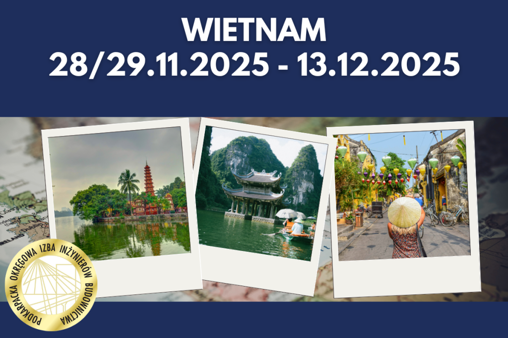 Podkarpacka Okręgowa Izba Inżynierów Budownictwa zaprasza czynnych członków wraz z osobami towarzyszącymi na wycieczkę do WIETNAMU w terminie 28/29.11.2025 r. – 13.12.2025 r. organizowaną przez Biuro podróży RAINBOW.