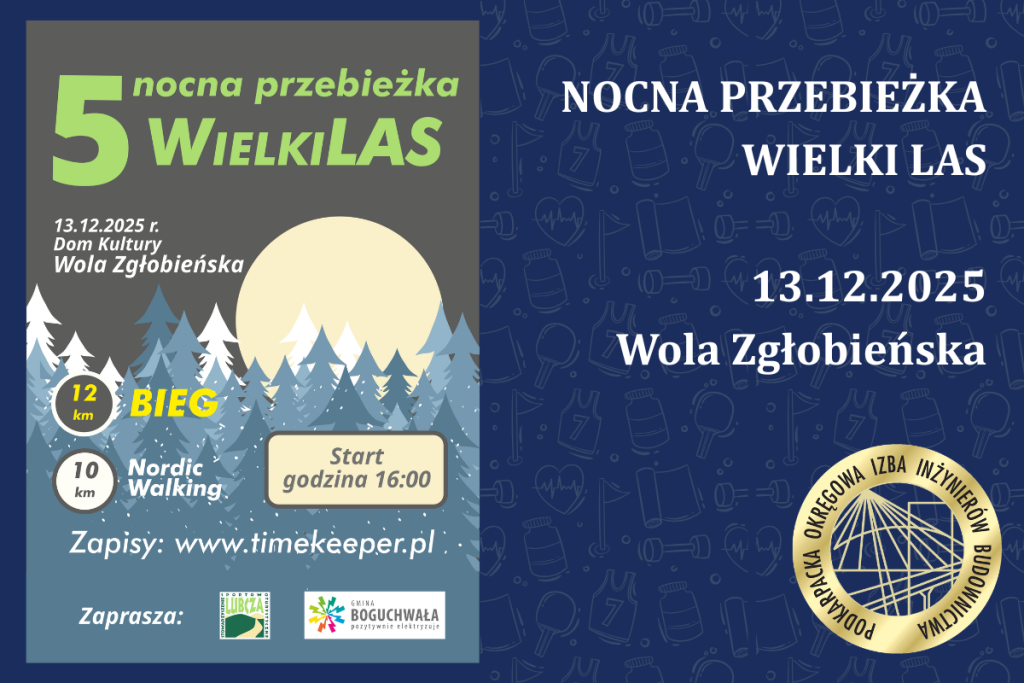 Już 13 grudnia 2025 r. zapraszamy czynnych członków PDK OIIB na piątą edycję Nocnej Przebieżki „Wielki Las”, będącej biegową zapowiedzią