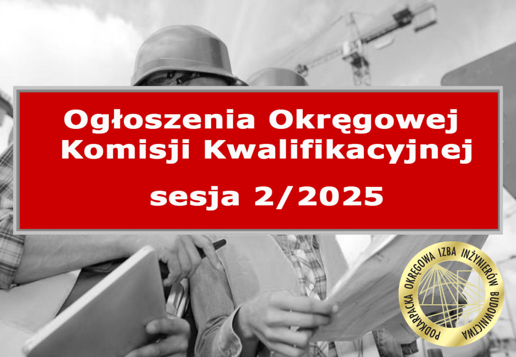 Przewodniczący Okręgowej Komisji Kwalifikacyjnej zawiadamia, iż wnioski o nadanie uprawnień budowlanych w sesji wiosennej 1/2026 można składać : w dniach od 26 stycznia 2026 r. do 6 lutego 2026 r. (liczy się data stempla pocztowego)